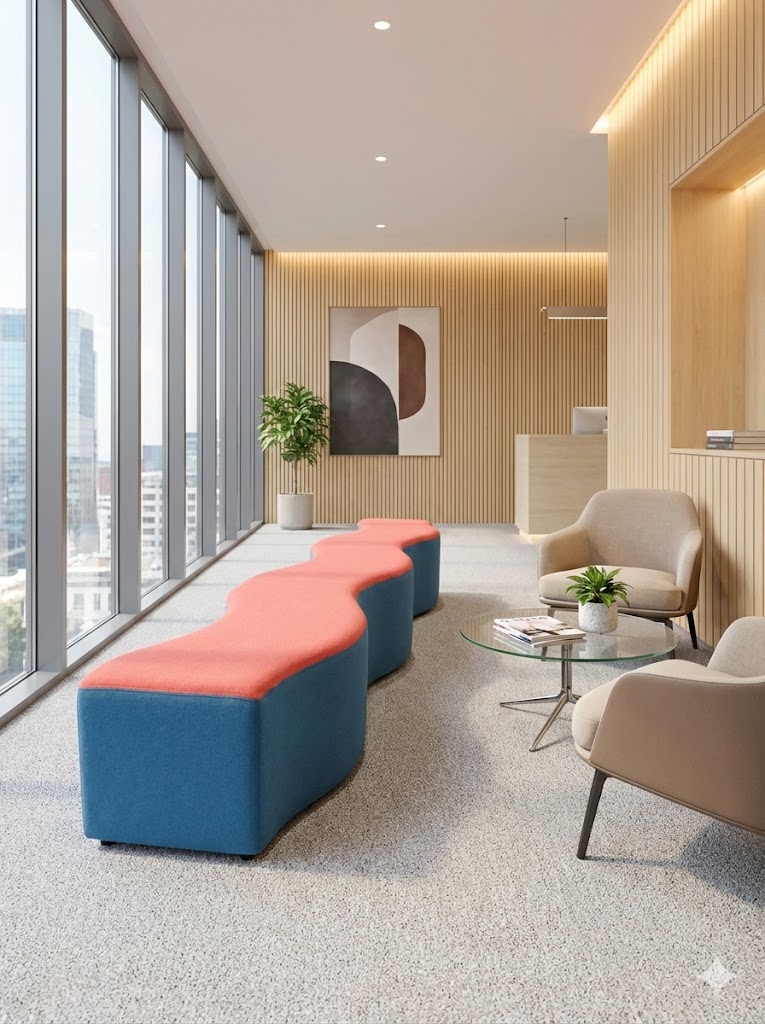 Ein echtes Sammlerstück für Design-Liebhaber: Die "Ripple Bench" (Wellenbank) von Laurinda Spear von Steelcase. Skulpturales Design, organischer Schwung und ein echter Blickfang für Foyers, Lounges oder das moderne Zuhause.