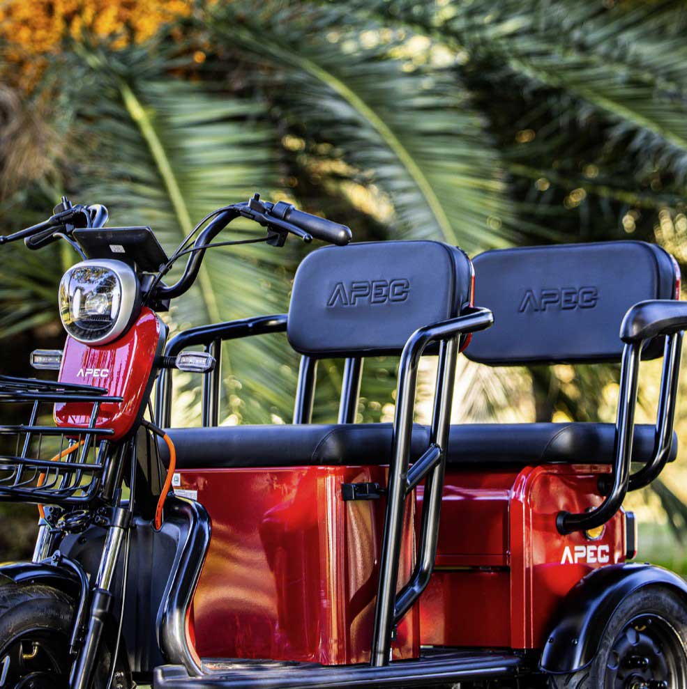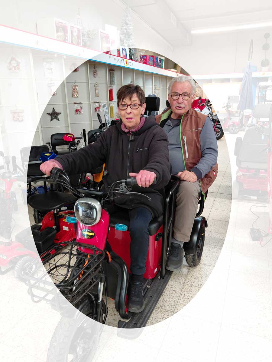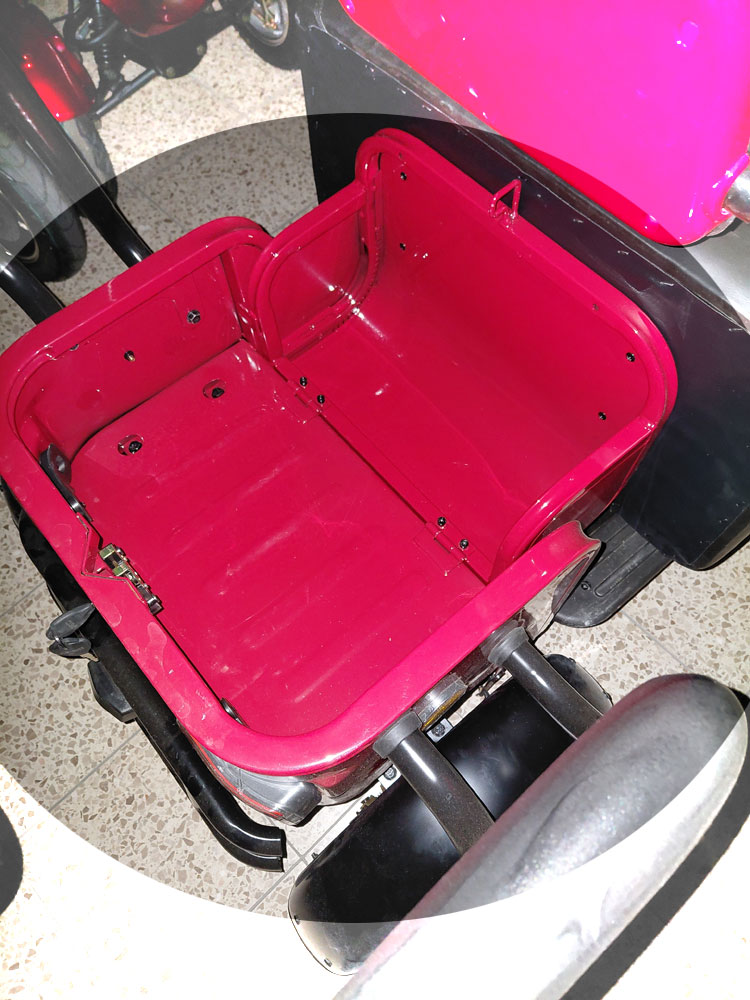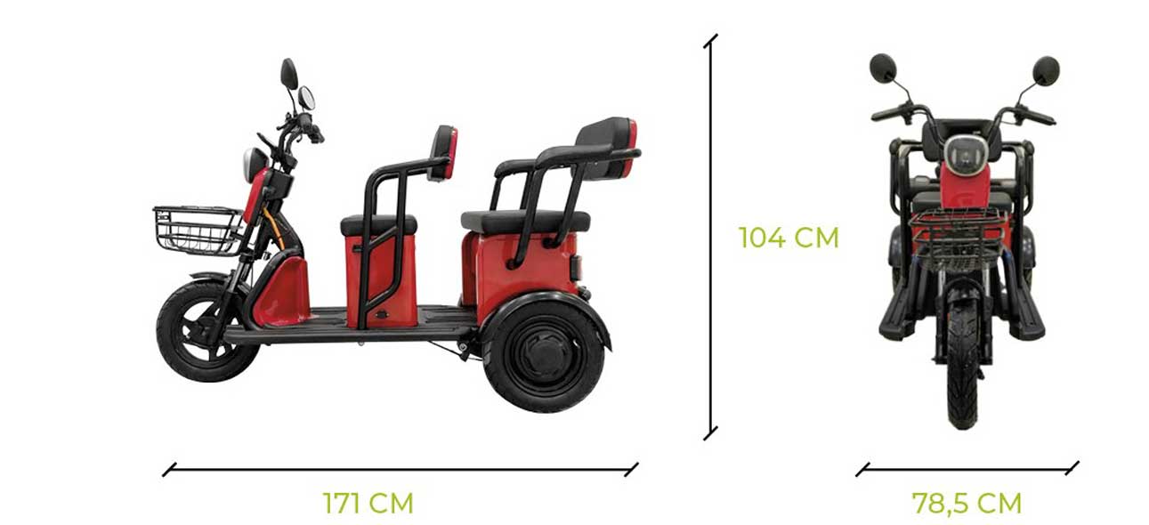 Zulassung für 2 Personen: Das Dreirad ist für zwei Personen zugelassen, sodass Sie mit einer Begleitperson unterwegs sein können oder Sitz als Transportfach nutzen