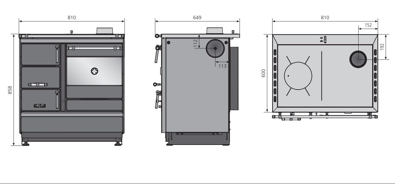 Variante links = Backfach und Rauchgas-Anschluss rechts